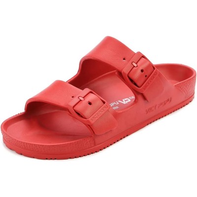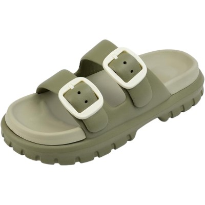Womens Sandals Adjustable Double Buckle Strap Waterproof EVA Flat Slides