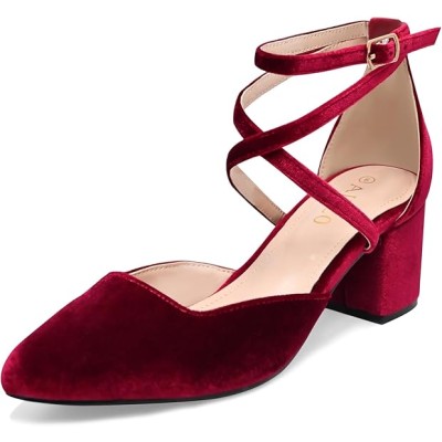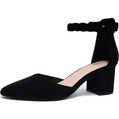 Women's Low Block Heels Pumps 2 Inches Chunky Closed Toe Heels D'Orsay Pointed Toe Heels for Women