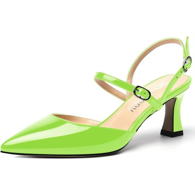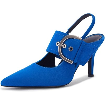 Womens Slingback Pumps Closed Pointed Toe High Heels Belt Buckle Strap Dressy Work Shoes