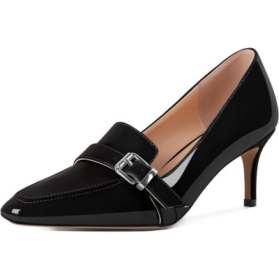 Kitten Heel Square Pointed Toe Slip On Low Heel Pumps Buckle Strap Dress Shoes Pumps for Women