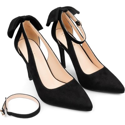 Womens Bow Knot High Heels Pointed Toe Stiletto Ankle Strap D'Orsay Pumps Bow Evening Dress Shoes