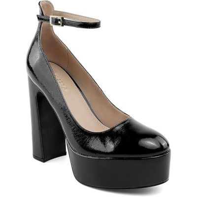 Women's Chunky Platform High Heels Closed Toe Block Pumps Ankle Strap Dress Wedding Party Pumps
