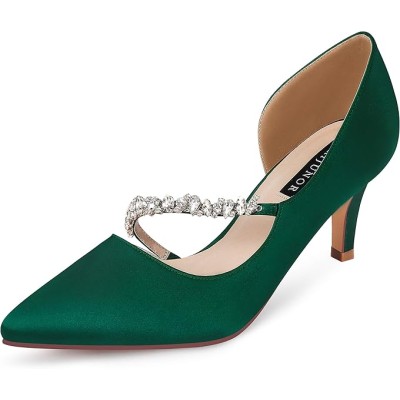 Women Mid Kitten Heels Closed Pointy Toe D’Orsay Pumps Wedding Party Shoes