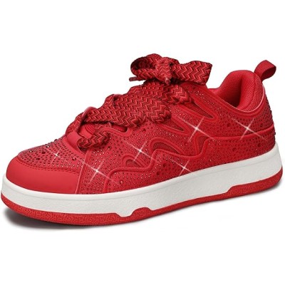 Women's Sparkle Rhinestone Fashion Sneakers Walking Tennis Bling Glitter Roaring Shoes Platform Lace up Casual Mesh Sneaker